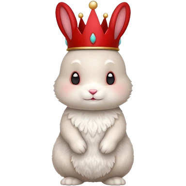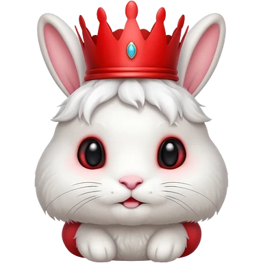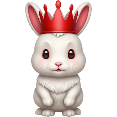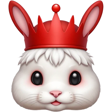 white cute bunny with red crown, funny emoji