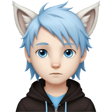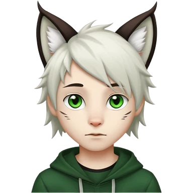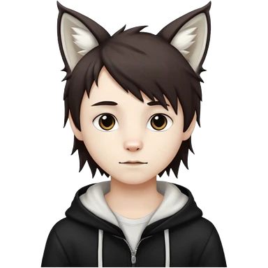 White cute boy with dark brown emo-style hair and white lynx ears emoji