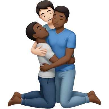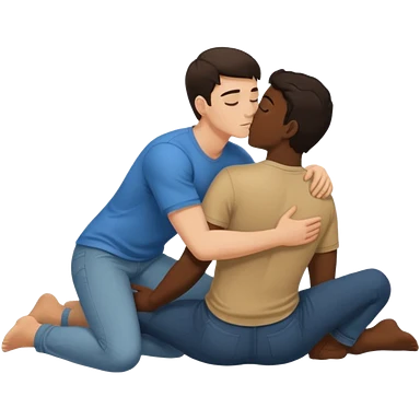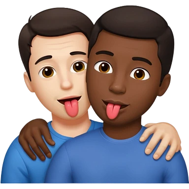 White dark hair male and black male, in love, naked, passionate kiss, snuggle, groping each other,full body view, on floor, orgasm emoji | AI Emoji Generator