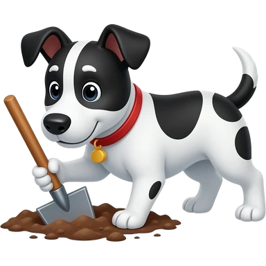 The cartoon black and white dog digs with is paws emoji