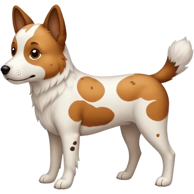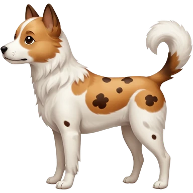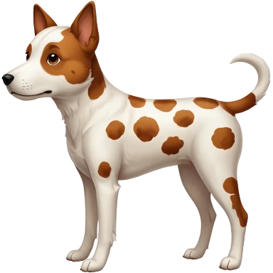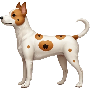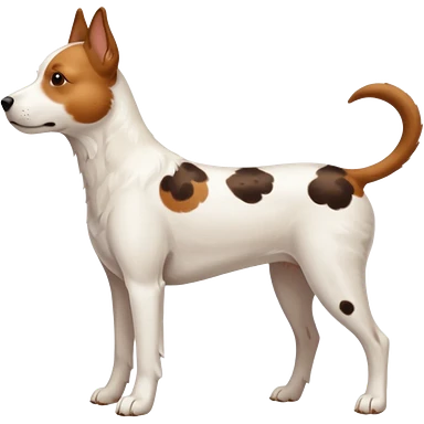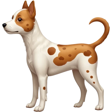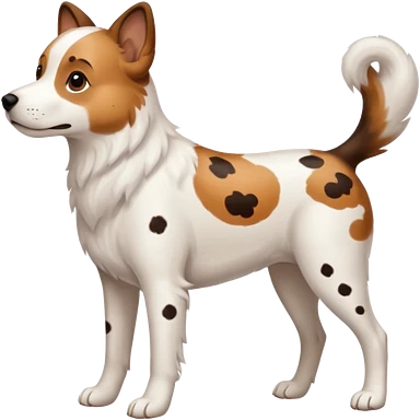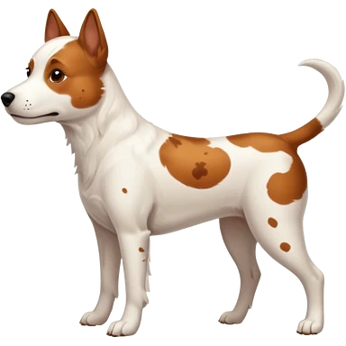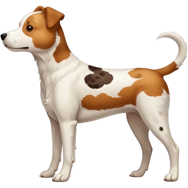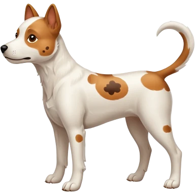 White dog with brown eyes and some long body and white ears with brown spots curved on the sides emoji