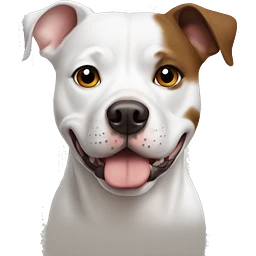 white pitbull dog with brown spots in the face and a big spot in the eye emoji