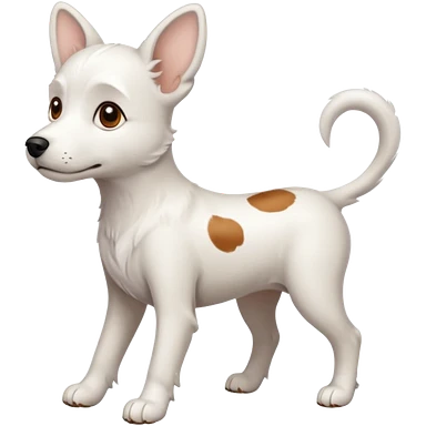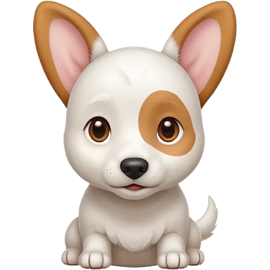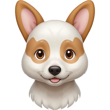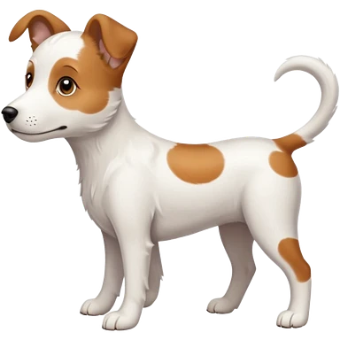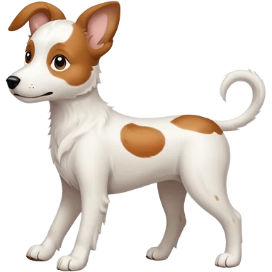 White dog with brown eyes and some long body and white ears with brown spots curved on the sides emoji