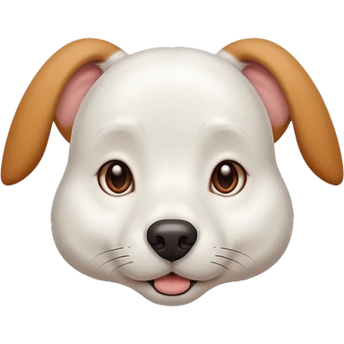 White dog with brown eyes and some long white body and white ears with brown spots curved on the sides emoji