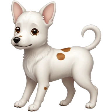 White midle dog Not fluffy with brown eyes and some long white body and white ears with brown spots curved on the sides , walking emoji