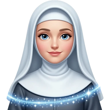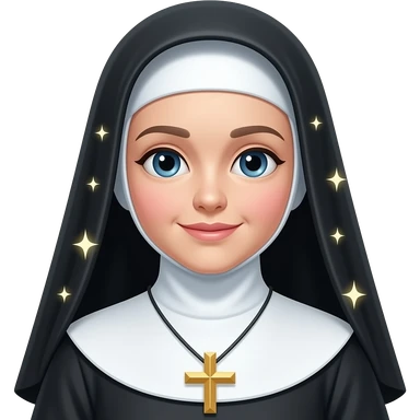 A light-skinned woman with brown eyes and a calm smile, wearing a black and white nun’s habit. emoji