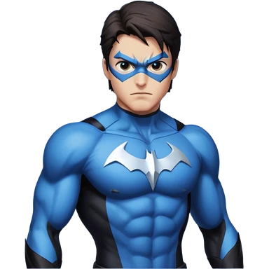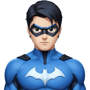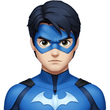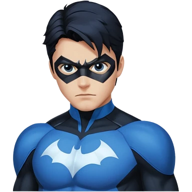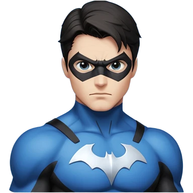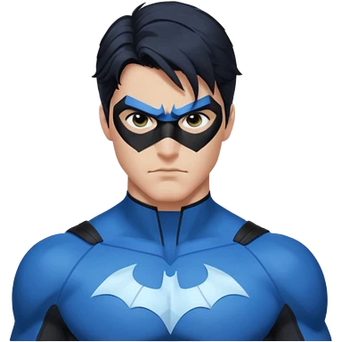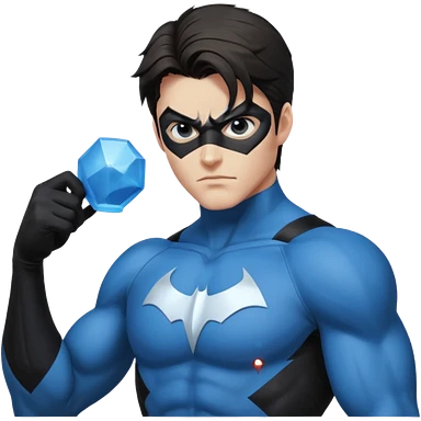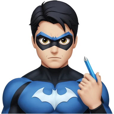 nightwing with white eyes, wearing nightwing uniform, analyzing evidence emoji