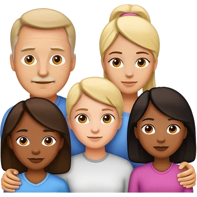 Create a family emoji with a white dad and black mom and 3 daughters of 15, 13 and 11 years old emoji