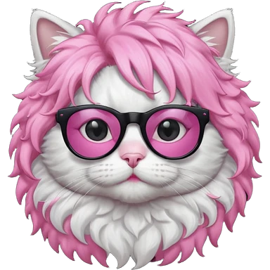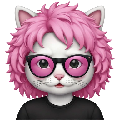 White cat wearing pink curly wig, black sunglasses, black T-shirt emoji