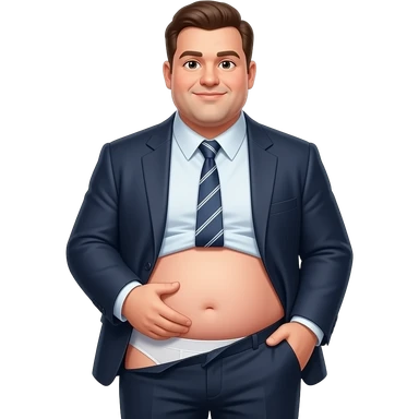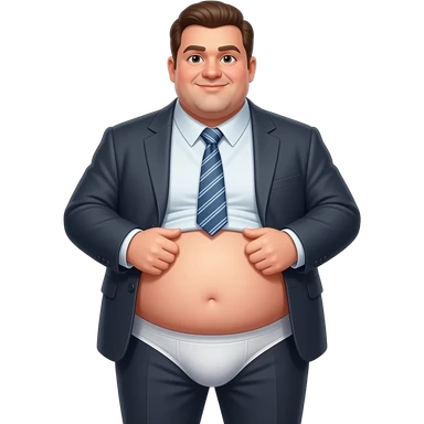 A man in suit with a tie but very fat showing its stomace and as pants underwear (white) and remove the pants (excpet underwear) emoji