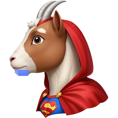 white female goat wearing a read cape like superman emoji | AI Emoji Generator
