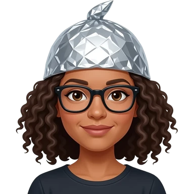 Female black glasses curly hair Emoji wearing a tin foil hat emoji