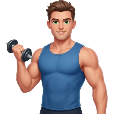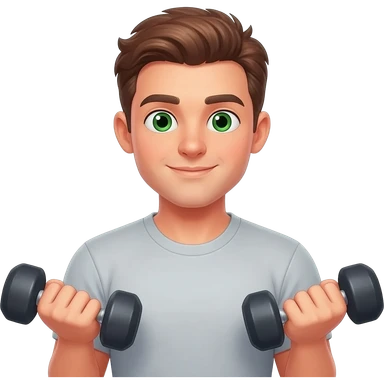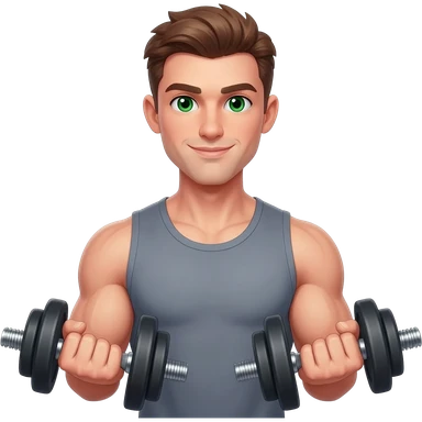 White fitness men with brown hair and green eyes with dumbbells in their hands emoji | AI Emoji Generator