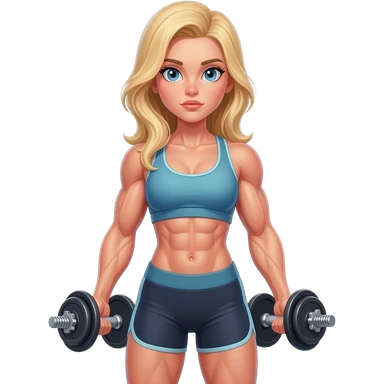 White beautiful fitness women with blonde hair and blue eyes with dumbbells in their hands emoji