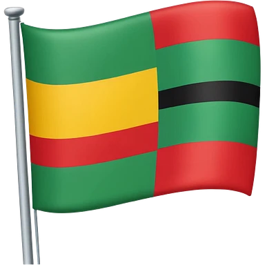 A flag with three horizontal stripes: green on the top, white in the middle, and black on the bottom. In the center of the white stripe, there are three red five-pointed stars arranged in a row. The distance between the left and right stars and the central star is equal to the distance between the flag’s shorter edges. emoji