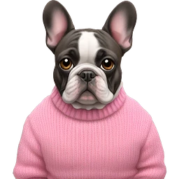 Gray and white Frenchie with black spots with a blonde woman emoji