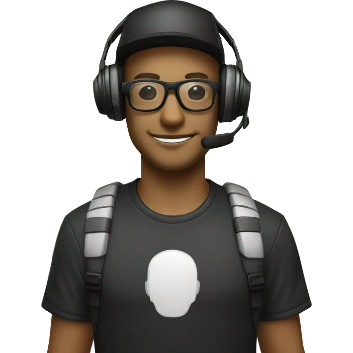 white gamer, black basecap, black glasses, headset emoji | AI Emoji Generator