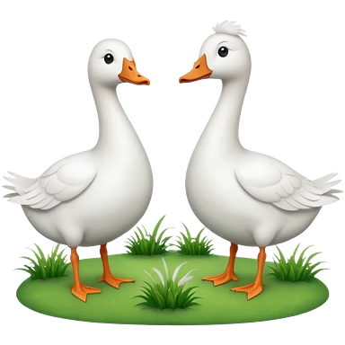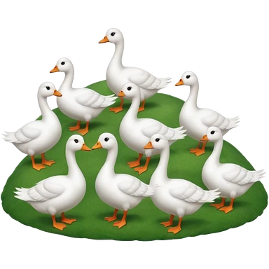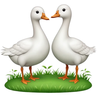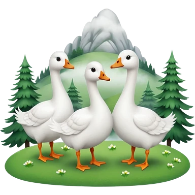 white geese standing on a small green hill, front view, foggy emoji | AI Emoji Generator