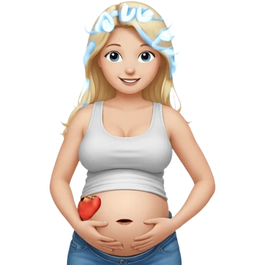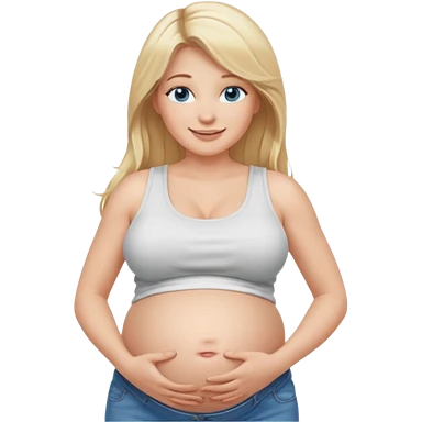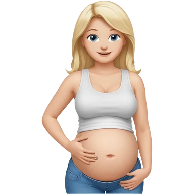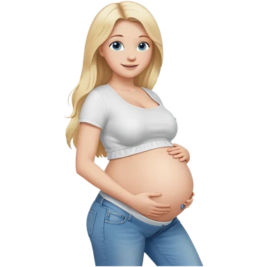 White girl, 18, long blonde hair, blue eyes, white crop top, jeans, huge pregnant belly, big boobs, side view, skinny, bare midriff, smiling emoji | AI Emoji Generator