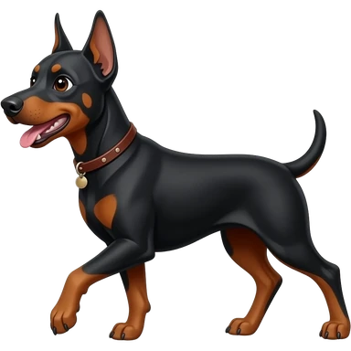 white girl with brown hair walking a dobberman dog emoji