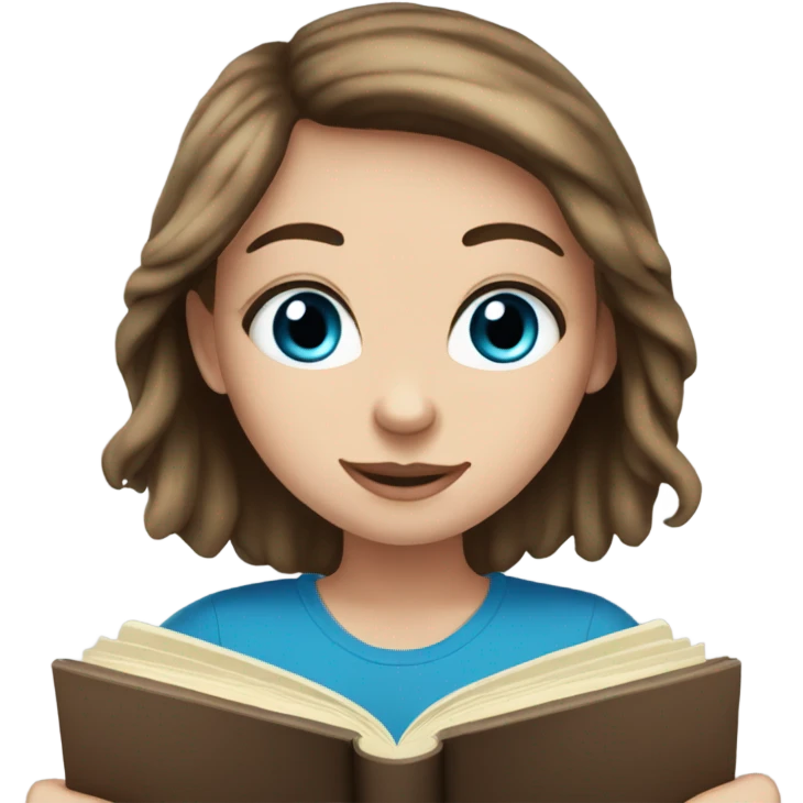 white girl brown hair blue eyes emoji reading book emoji | AI Emoji Generator