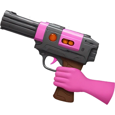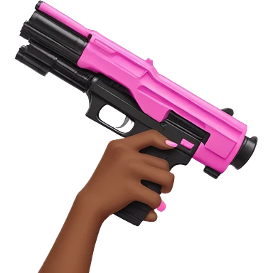 White Girl brown hair hand pink nails holding pink gun emoji | AI Emoji Generator