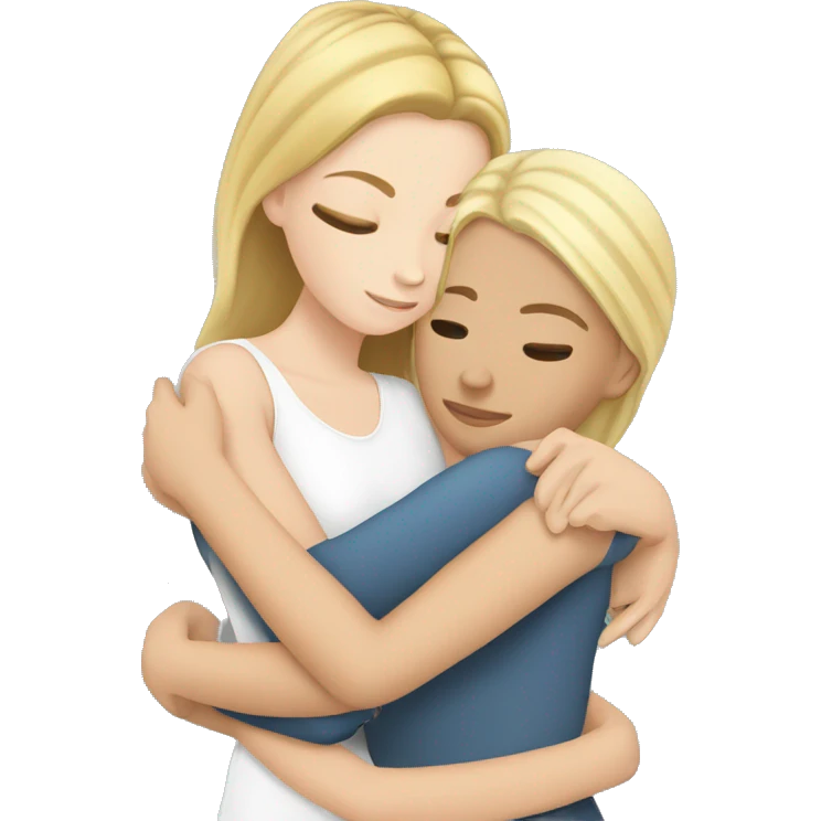 Blonde white girl hugs Chinese boy who has pale skin and black hair emoji