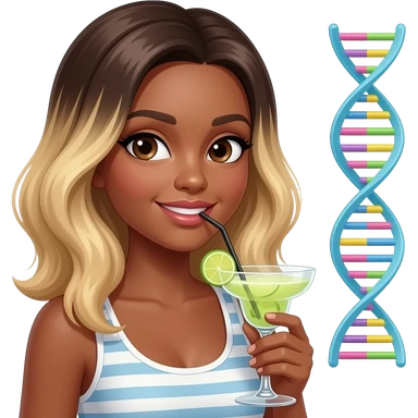 White girl with olive skin brown eyes ombré bronde hair and holding a margarita no stethoscope “add 🧬 emoji