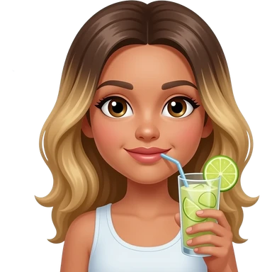 White girl with olive skin brown eyes balayage bronde hair and holding a margarita add 🧬 emoji