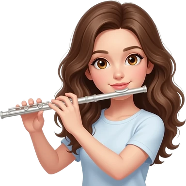 white girl with wavey brown hair and hazel eyes playing flute emoji