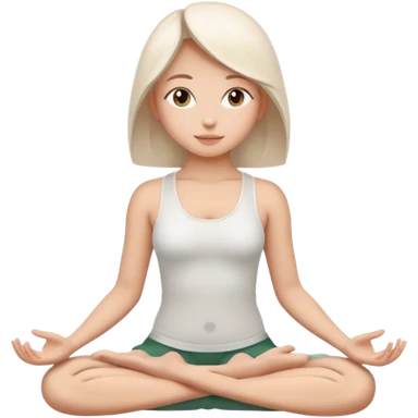 a blonde girl with a short haircut in a white dress sitting in a lotus position and meditating emoji