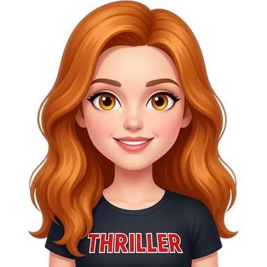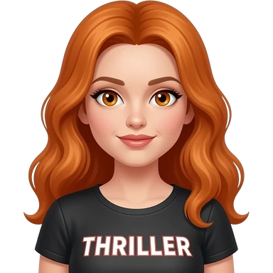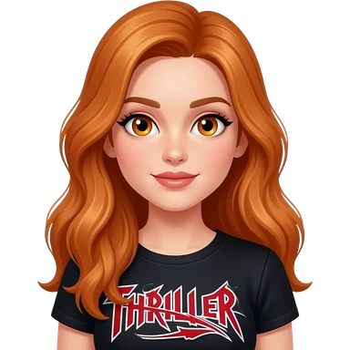 sexy girl with long ginger hair and ginger eyes a top with THRILLER written on it emoji