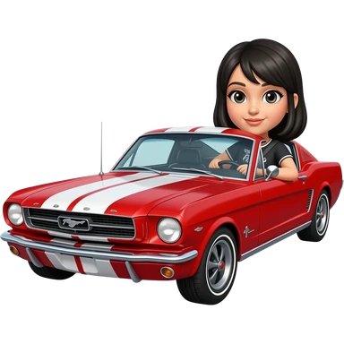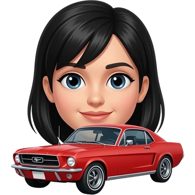 Girl with black hair in a red Ford Mustang 1968 coupe emoji