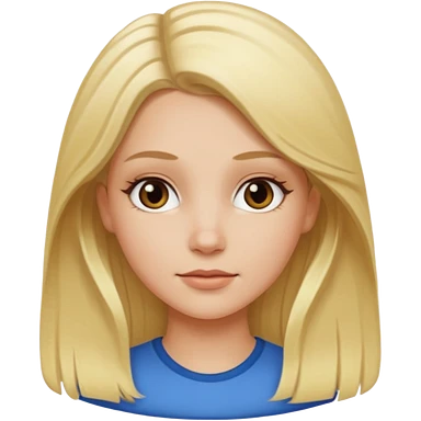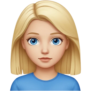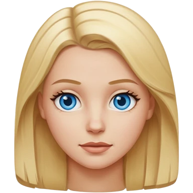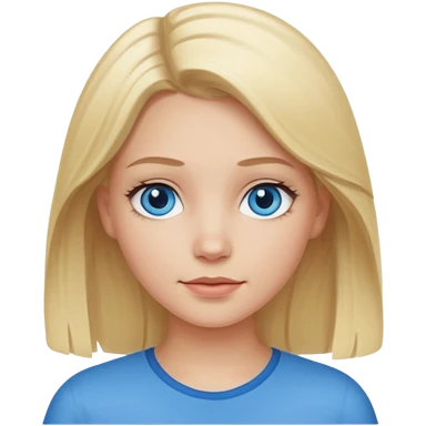 Smiling girl with long blond hair with a middle part and blue eyes emoji
