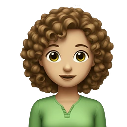 white girl with brown curly hair and a mole on her cheek with green eyes emoji | AI Emoji Generator