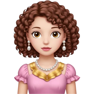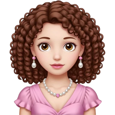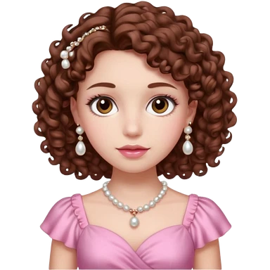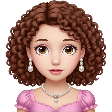 A girl with a brown curly hair and beautiful brown eyes and white skin and pink dress with pearl jewelry emoji
