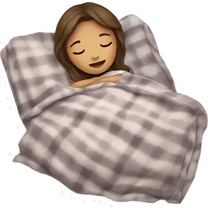 White girl with brown hair sleeping with pink blanket emoji | AI Emoji Generator