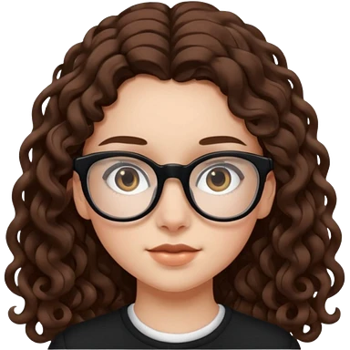 white girl with chest-length brown curls and black cat-eye glasses emoji