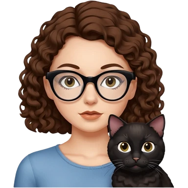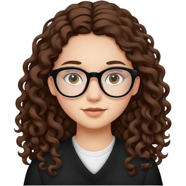 white girl with brown medium length curls and black cat-eye glasses emoji | AI Emoji Generator