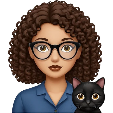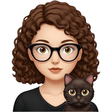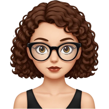 white girl with brown medium length curls and black cat-eye glasses emoji