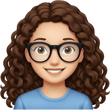 White girl with medium length brown wavy hair, glasses, and green eyes emoji