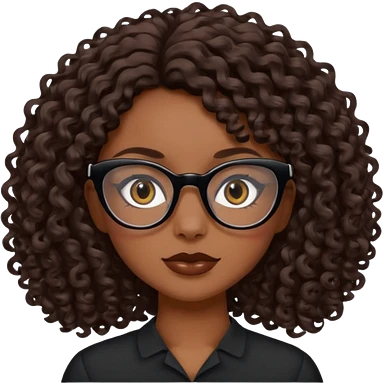 Black girl, with medium length black hair, one hazel eye and one dark brown eye,with glasses,with a necklace,bracelets emoji