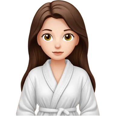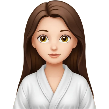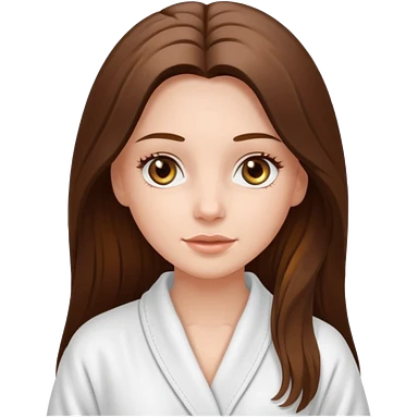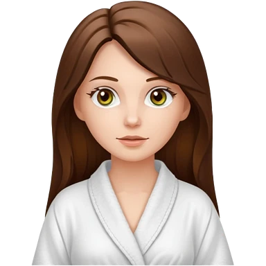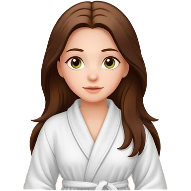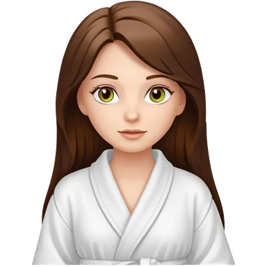 pretty white long brunette hair girl with hazel eyes in a bathrobe at the spa emoji