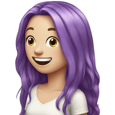 White girl with purple long hair, laughing emoji