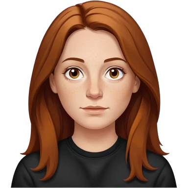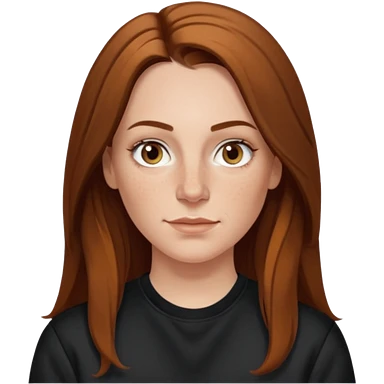 White girl with long caramel hair, blue eyes, freckles glasses emoji