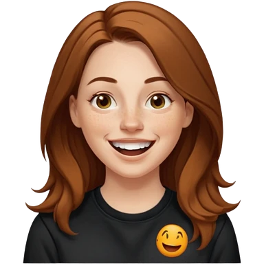 white girl with hazel eyes and brown straight medium hair and freckles smiling emoji