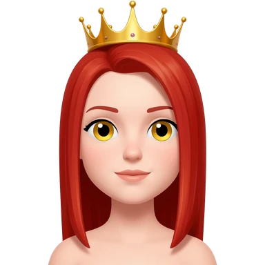 White girl with red straight hair and yellow eyes with a crown on her head emoji