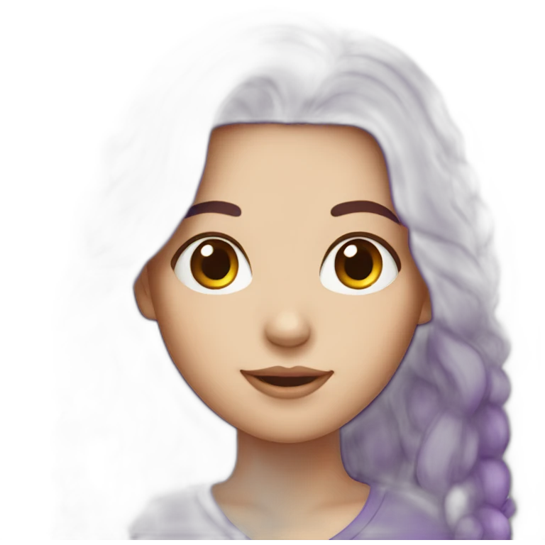 white girl with dark brown long hair with purple ombré at the tips emoji
