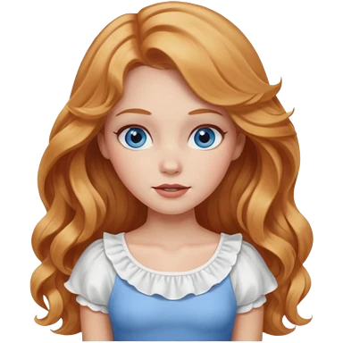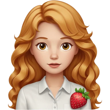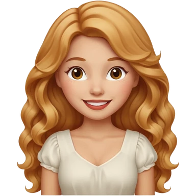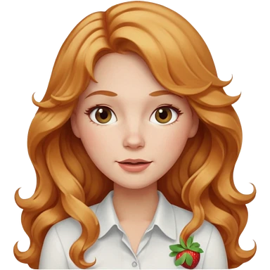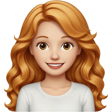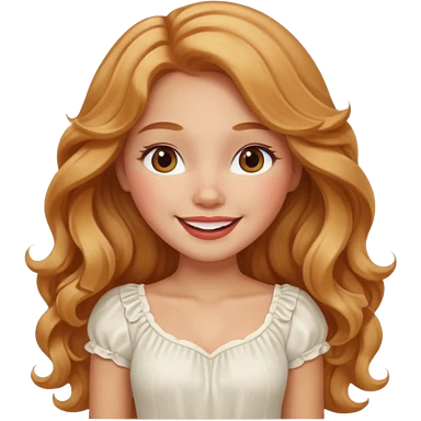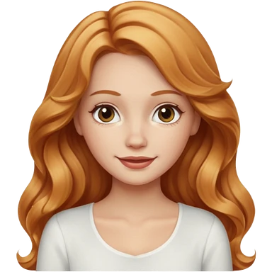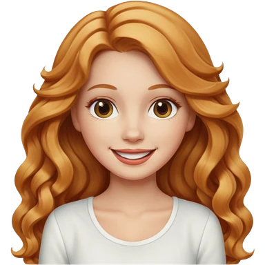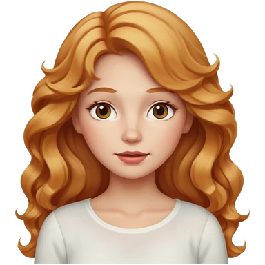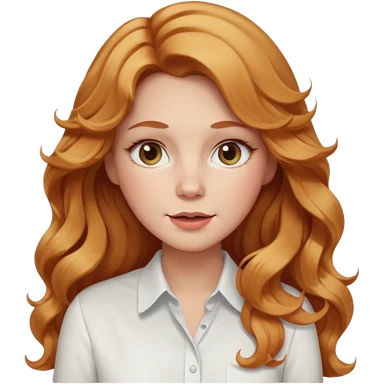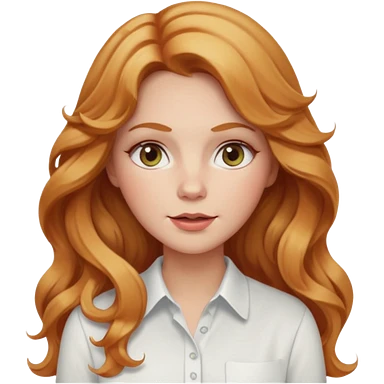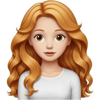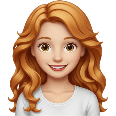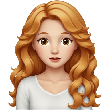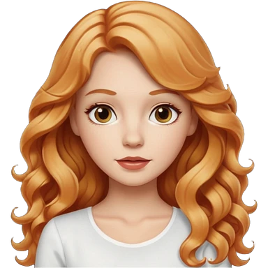 white girl with strawberry blonde supernlong wavy hair, white top emoji