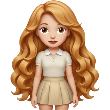 white latina girl with strawberry blonde super long wavy hair, white skirt, blushed cheeks emoji